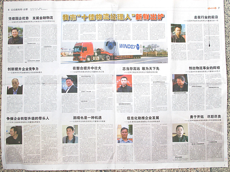 由温州市道路运输管理局和温州日报联合主办,温州市物流商会、温州市鹿城区物流商会、温州市瓯海区物流商会、温州市龙湾区物流商会、温州市道路危险货物运输行业协会协办的2012年“十佳物流经理人”评选活动,在各物流企业经理人的积极参与下,取得了圆满成功。