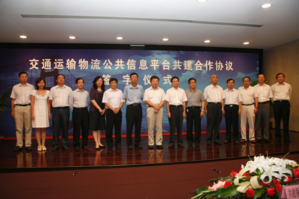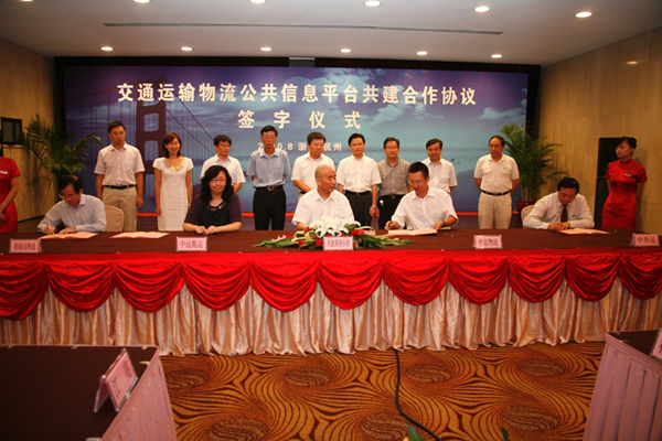 继与中国物流与采购联合会、中国物品编码中心等协会、科研院所签订共建协议后,2010年8月18日,交通运输物流公共信息平台(以下简称“平台”)省际共建领导小组与中国远洋物流有限公司、中国外运股份有限公司、中远集装箱运输有限公司和招商局物流集团有限公司4家国内物流业龙头企业在杭州签订共建战略协议,“平台”共建联盟再添新成员。交通运输部高宏峰副部长见证了此次签约,交通运输部国际合作司、科技司、综合规划司、道路运输司、浙江省交通运输厅等相关领导出席了签约仪式。